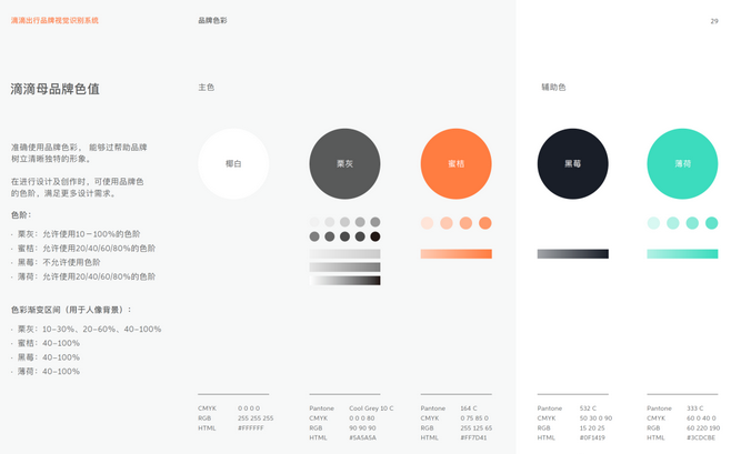 另一項引人注目的變化,在于顏色體系的全面升級。參照2020年正式發(fā)布的《滴滴出行品牌視覺識別系統(tǒng)》,我們不難發(fā)現(xiàn),品牌的核心色彩已擴展為椰白、深灰與鮮桔的優(yōu)雅組合,其對應(yīng)的RGB精準色值分別為純凈無瑕的255,255,255、沉穩(wěn)內(nèi)斂的90,90,90,以及活力四射的255,125,65。